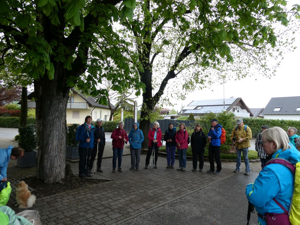 29 Wanderer*innen trafen sich trotz regnerischen Wetters um 9:30 Uhr am Bahnhof Endingen, um gemeinsam mit dem Zug nach Sasbach zu fahren. Nachdem alle ein Ticket gelöst hatten, ging es um 10:00 Uhr los.