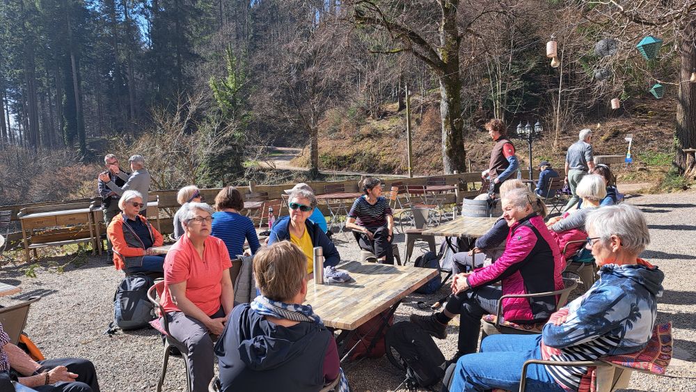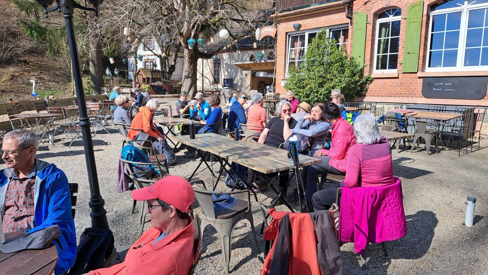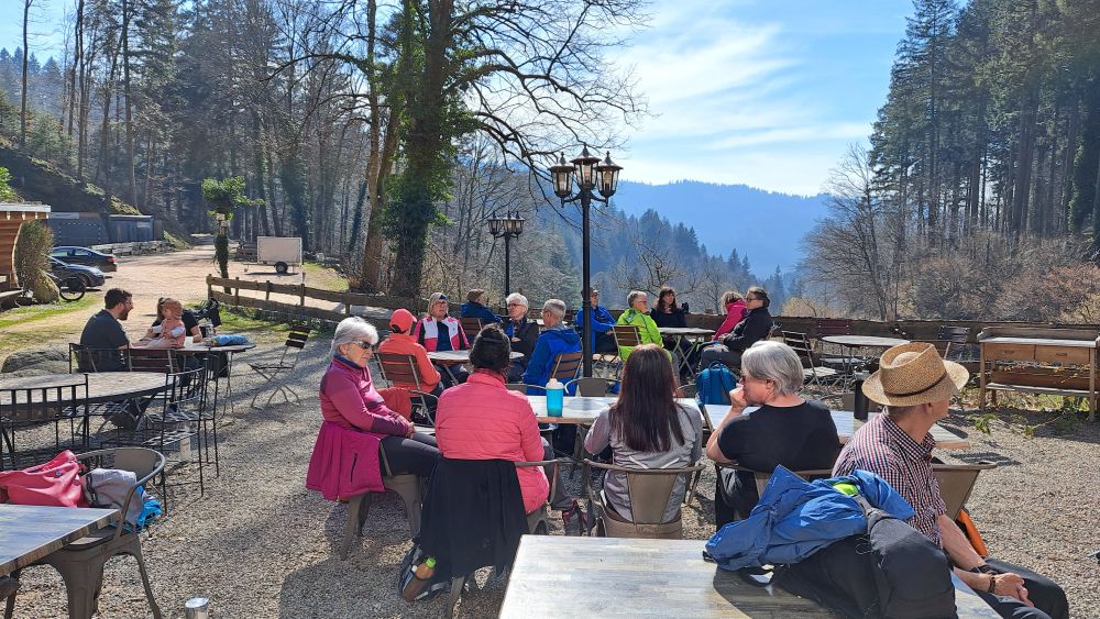 Eine Bewirtung wie vorgesehen konnte leider aufgrund des dieswöchigen Küchen-Brandes im Restaurant nicht durchgeführt werden. Da aber alle vorher informiert worden sind, hat uns auch das selbst mitgebrachte Vesper gut geschmeckt. Vielen Dank auch nochmals an die Restaurantleitung, dass wir die Tische und Stühle benutzen durften.