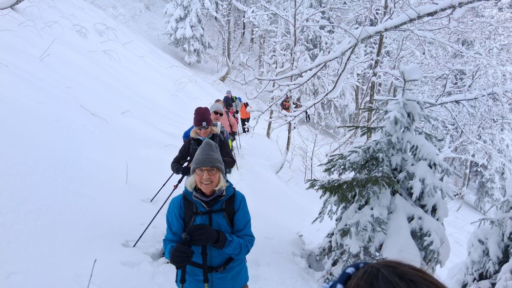 Fazit des Tages: Ein Traumtag bei besten Verhältnissen mit 30 cm Neuschnee, Sonnenschein und einer hoch motivierten Schneeschuhgruppe.