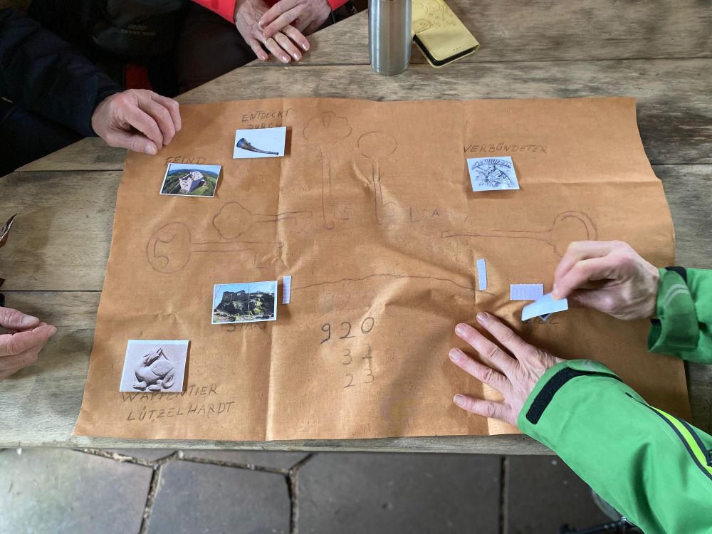 Oben angekommen, tauchten wir tief in die Vergangenheit ein: Erzählt wurde die Legende von der Entführung Gerolds von Hohengeroldseck durch seinen Kontrahenten Diebold von Lützelhardt. Diese spannende Geschichte bildete den Auftakt zu unserer Rätselaufgabe.