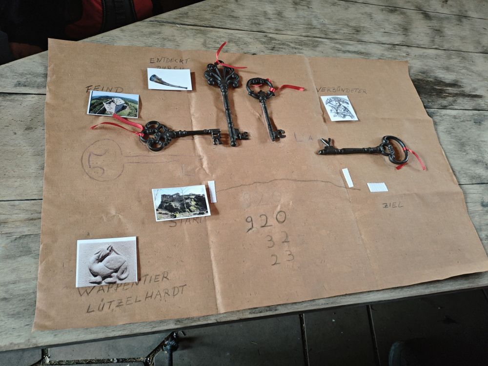 Auf der Burg galt es nun, verschiedene Hinweise zum geheimnisvollen Fluchtweg des Ritters Diebold von Lützelhardt zu entdecken. Mit Hilfe der fragmentiert erhaltenen „Flucht- Karte“ und mehreren „historischen“ Schlüsseln gelang es schließlich, sowohl den Verbündeten als auch den mutmaßlichen Fluchtort zu ermitteln. Teamgeist und Spürsinn waren gefragt – und wurden eindrucksvoll unter Beweis gestellt.
