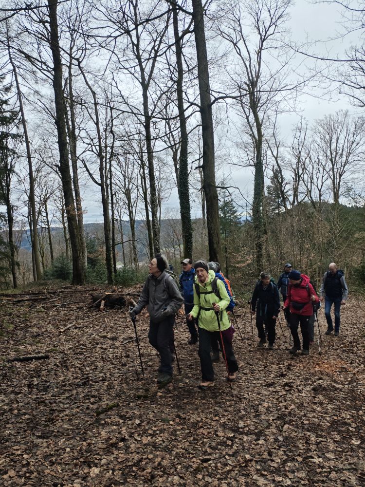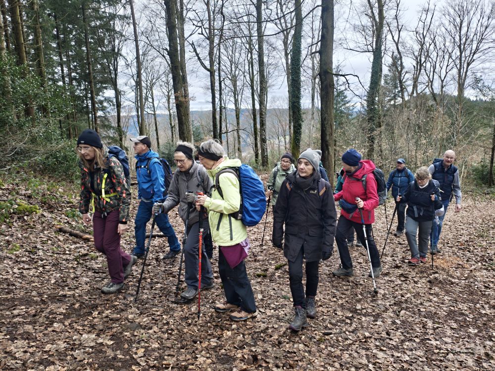 Bei glücklicherweise trockenem Wetter führte unser Weg zunächst stetig bergauf in Richtung der eindrucksvoll gelegenen Burgruine Lützelhardt. Unterwegs erhielten die Teilnehmer einige Informationen zur Geschichte der Burg, die im Mittelalter eine bedeutende Rolle in der Region spielte.