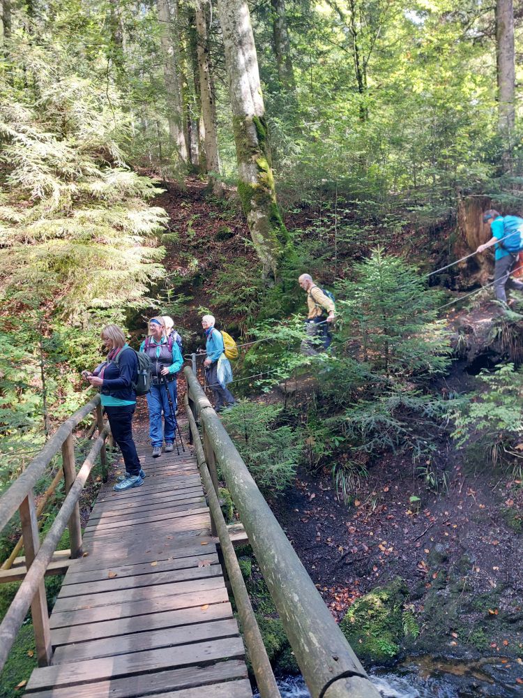 Bei glücklicherweise trockenem Wetter führte unser Weg zunächst stetig bergauf in Richtung der eindrucksvoll gelegenen Burgruine Lützelhardt. Bei kleinen Rätselaufgaben wurde gemeinsam geknobelt, gelacht und diskutiert.