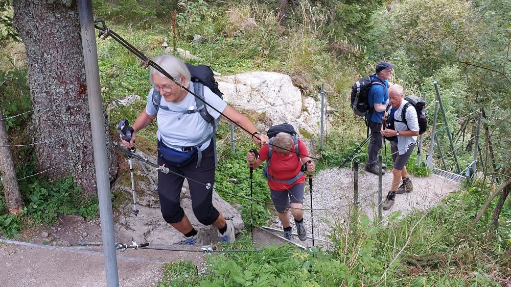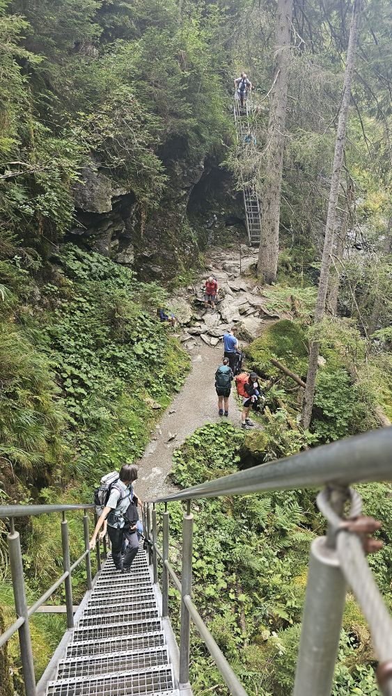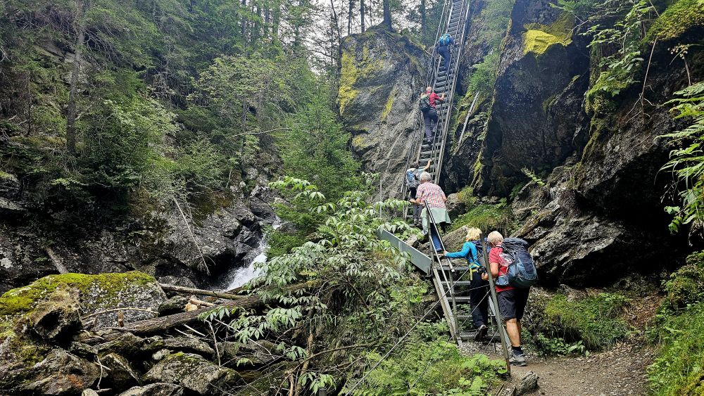 Entlang an schroffen Felswänden und Moorflächen fahren wir durch ein Seitental des Ennstales, dem Untertal mit dem Untertalbach, zum Startpunkt unserer Tour: der „Waldhausalm“. Schon bald erreichen wir den Riesachfall, den größten Wasserfall der Steiermark, durch den nächtlichen Regen besonders wasserreich und wild. Parallel zum Wasserfall geht es stets steil bergauf, Aussichtsplattformen, Hängebrücken und ein gut gesicherten Alpinsteig begeistern uns total. Trotz angekündigtem Regentag meint es der Wettergott doch gut mit uns und wir bleiben auf der ganzen Strecke trocken. Die Einkehr in der schönen Sand Alm rundet die Wanderung ab. Auf dem Rückweg bleibt uns dann noch Zeit, den Ort Schladming etwas kennen zulernen. Auch zum Schwimmen und Relaxen reicht die Zeit noch gut aus bis zum Abendessen.