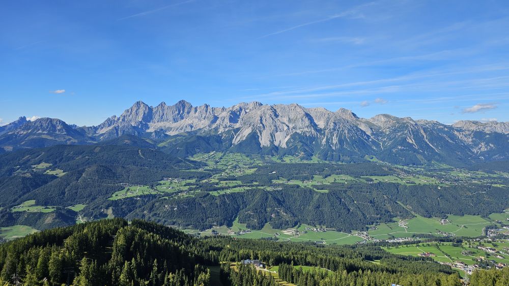 Marc und Sophia bringen uns dieses Jahr in das „grüne Herz von Österreich“, die Steiermark. Über Stuttgart, München, Salzburg weiter auf der Tauernautobahn erreichen wir unser Ziel: Schladming-Rohrmoos im Ennstal. Unser Hotel Waldfriedenliegt etwas erhöht über Schladming und eröffnet uns einen prachtvollen Ausblick auf das gegenüberliegende Dachsteinmassiv. In dem familiengeführten Hotel, werden wir sehr freundlich empfangen und von der ersten Minute an auch verwöhnt.
