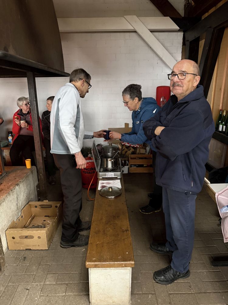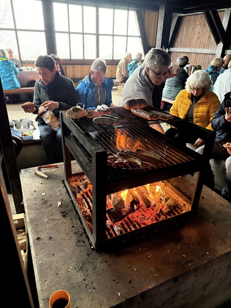 Vom Waldparkplatz Reute in Broggingen, wanderten wir über Steiggraben. An der Hermann Jäger-Hütte wurde eine Pause gemacht. Weiter ging es zum Herbolzheimer-Höfle. Dort erwartete uns ein Grillfeuer mit Glühwein. Es wurde fleißig gebrutzelt.